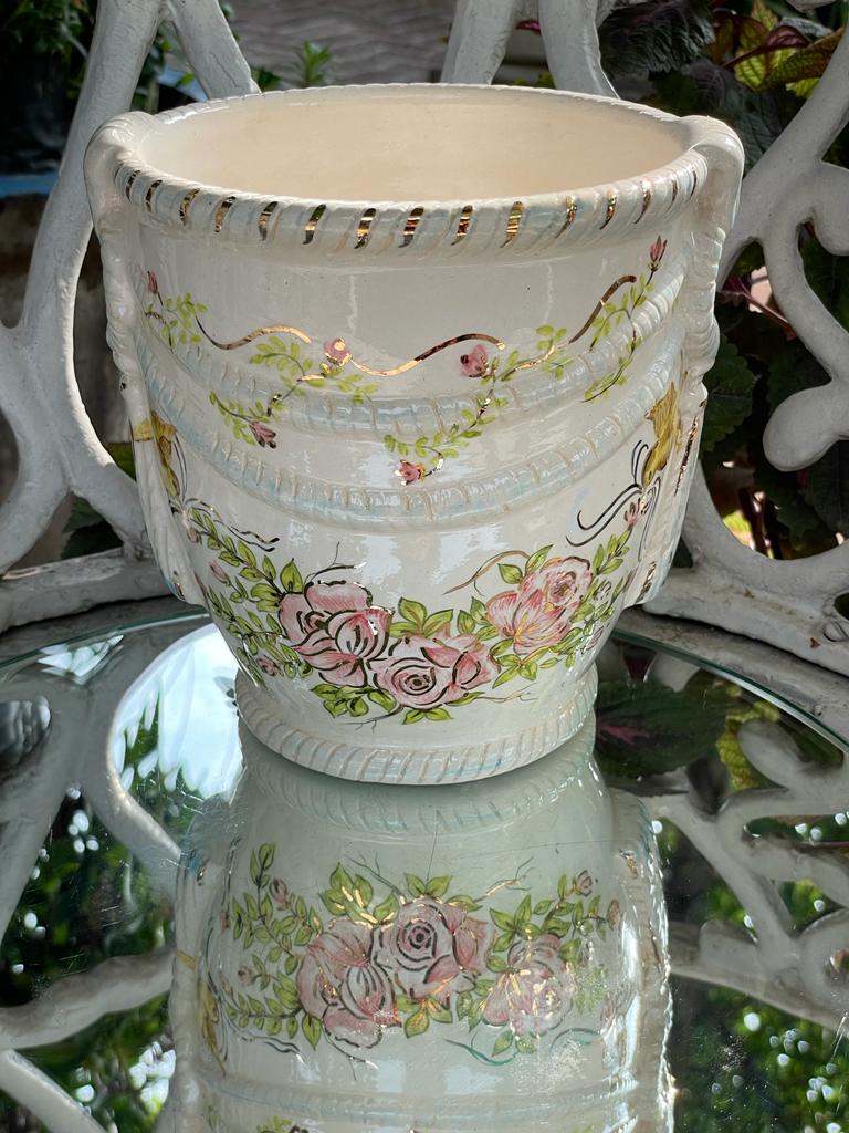 A lovely versatile piece for your enjoyment. It could be used as an ice bucket or a vase with a bouquet of flowers.